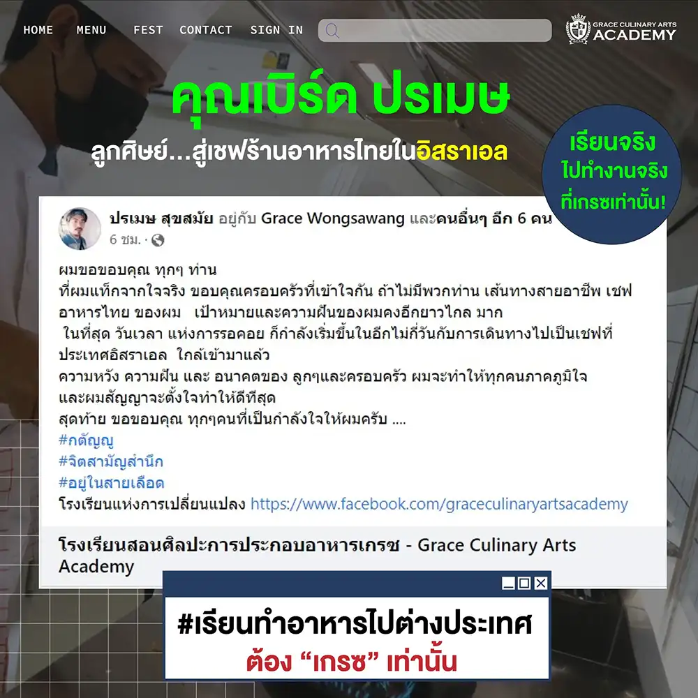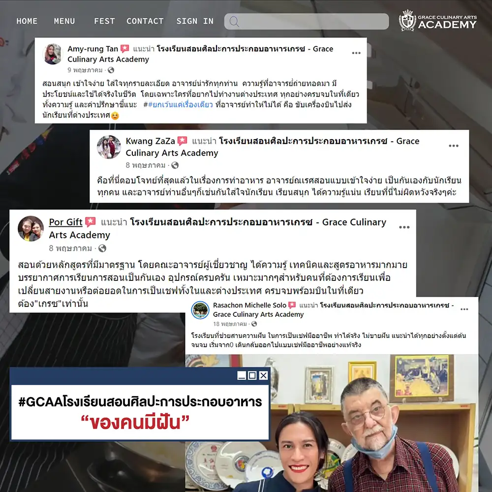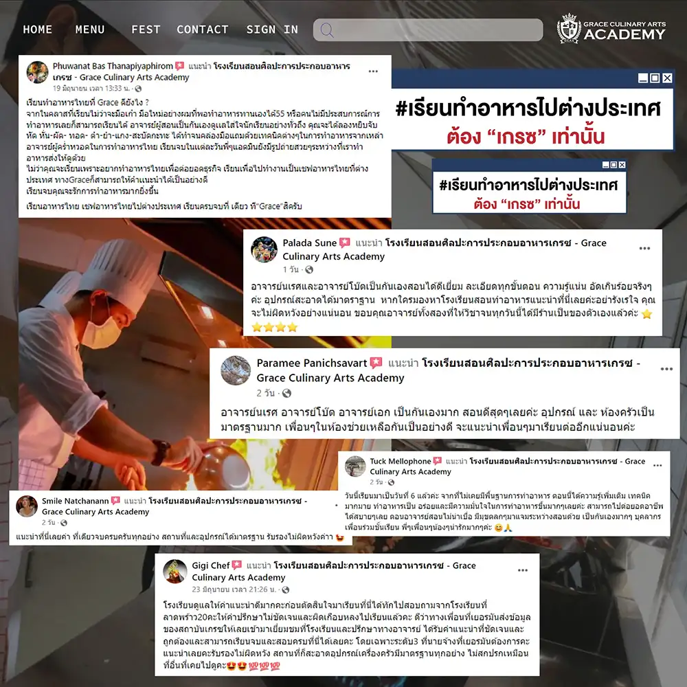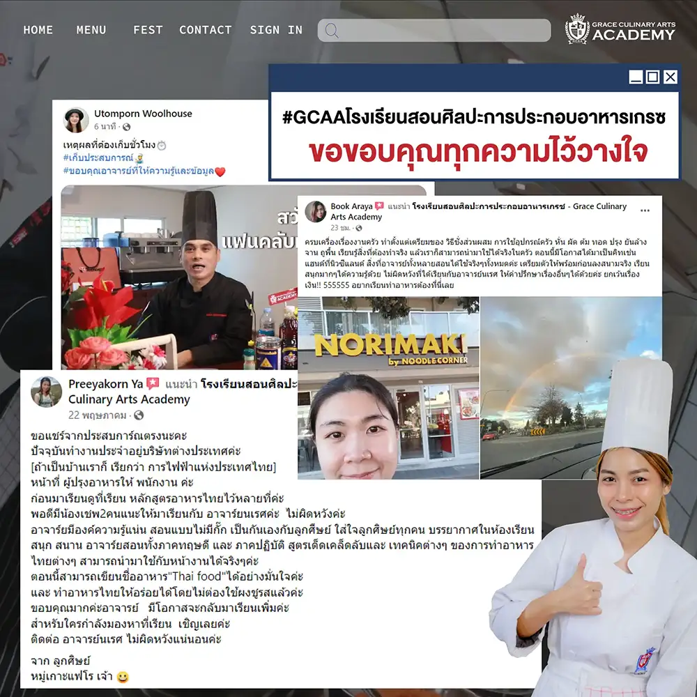 ทำไมต้องใช้บริการสนามทดสอบการทำอาหารกับเรา Grace Cooking School